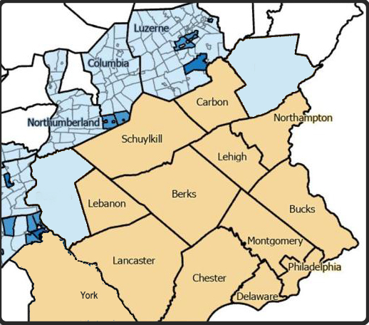 LOCATIONS We service the following counties: Philadelphia Bucks Chester MONTGOMERY Delaware Carbon Lehigh Northampton Lancaster Lebanon Schuylkill York